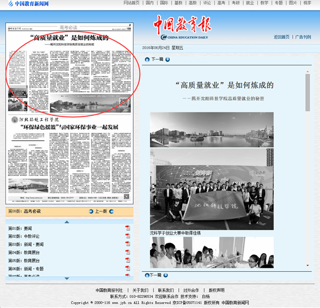 近日,中国教育报、沈阳晚报、人民网、网易等社会各大媒体纷纷对我校实行的“3+1”人才培养模式进行了报道转载,切实为我校多措并举实现学生连年高质量就业赢得了良好口碑,也为我校今后全面实施精准就业工程注入了新的动力。