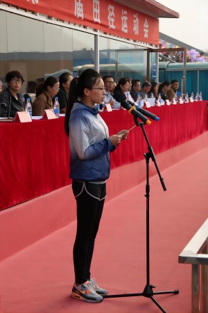 在全体师生高唱《义勇军进行曲》过后,副院长王喜魁致开幕词。他指出,我校第一届田径运动会的举办,是学校在圆满完成转设更名工作后,对全校体育文化发展和师生精神风貌的一次大检阅,也是对全体运动员身体素质、协作精神、竞技水平的综合考验。他希望全体运动员发扬奥运精神,拼搏进取、奋发勇为,赛出道德风尚、赛出竞技水平、赛出个性风采、赛出团结友谊;希望大会工作人员、全体裁判员坚持公平公正、实事求是的评判原则,恪守比赛规程、尽职尽责、公正裁判、热情服务,为各项竞赛顺利进行营造良好的工作氛围,努力把本届运动会办成“文明、团结、和谐、友谊”的盛会!随后,运动员代表牟菲同学和总裁判长梁新鑫老师分别登上主席台宣誓,表达了顽强拼搏和公正裁决、确保赛会圆满成功的决心。