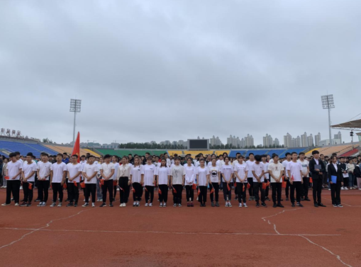 为深入贯彻落实中共辽宁省委教育工委、辽宁省教育厅关于开展“同升国旗、共唱国歌”辽宁百万师生开学第一堂课通知要求,庆祝中华人民共和国成立70周年,激发我校师生爱国之情、报国之志,厚植爱国主义情怀,进一步营造共庆祖国华诞、共享伟大荣光,共铸复兴伟业的浓厚氛围,充分展示我校广大师生的良好精神风貌,为中华人民共和国成立70周年献礼,9月2日清晨,我校在体育场举行“同升国旗、共唱国歌”新学期师生同上第一课主题教育活动,校长助理、学生处处长高洪震,各系学生工作副主任、分团委书记、辅导员老师,2017级、2018级学生,近4000余人参加。活动由校团委书记何大伟主持。