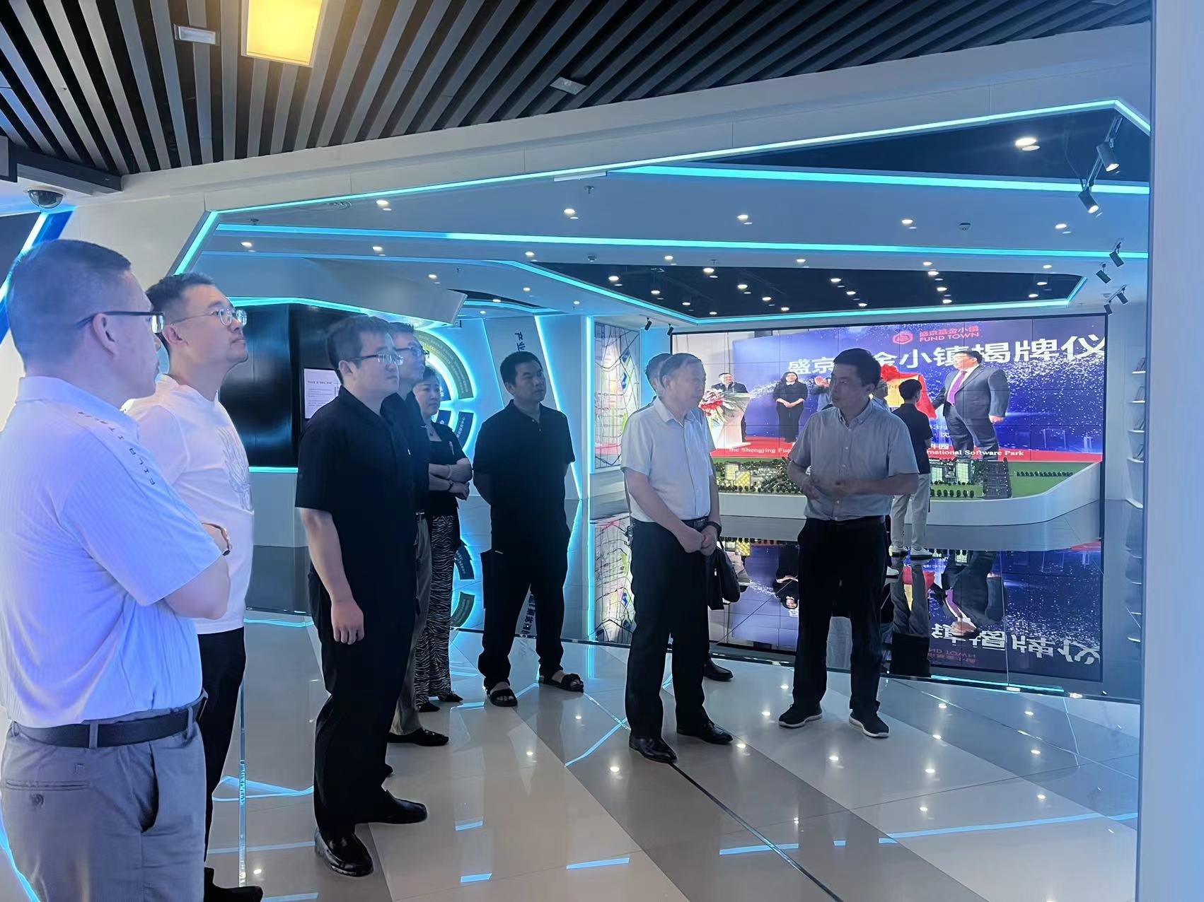 李海旭副总陪同陈保东校长一行,先参观了软件园规划沙盘,重点介绍了园区的产业分布情况,以及沈阳国际软件园(二期)沈阳数字经济产业园的发展定位。