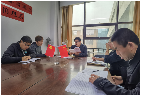 5月8日下午,信息与控制工程系党总支第二党支部召开工作会议。党支部书记张连浩主持会议并对支部扎实推动党史学习教育走深走实,做到有声势、见实效提出具体要求。参会的各位党员教师根据自身学习党史的情况,进行了表态发言,并一致表示要增强师德修养,提高自身素养,用党员的要求来严格要求自己,用党性来约束和克制自己的言行;提升教师党员自身素质,把握教育教学规律,提高教育质量和效益;关爱学生,淡泊名利,做到以诚相待。(根据信息党总支第二支部供稿修改 通讯员:吴莹)