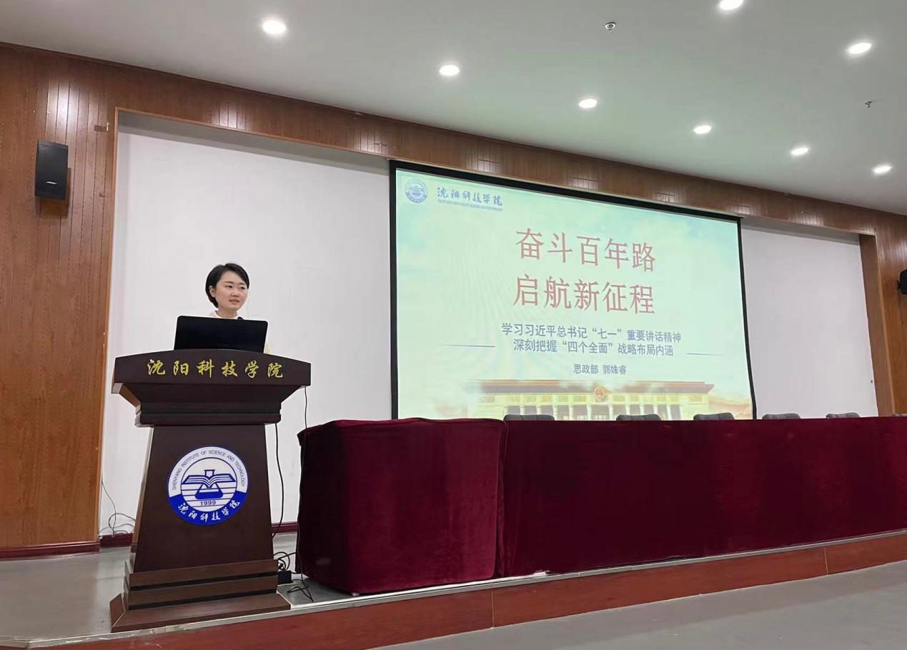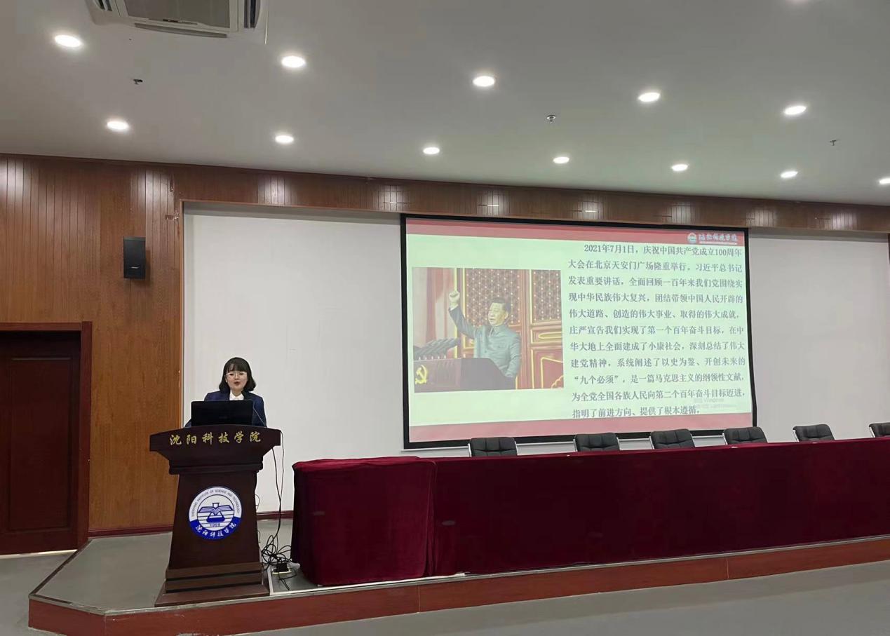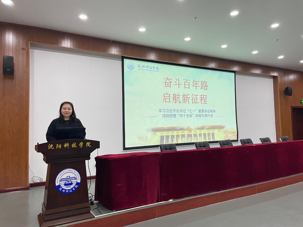 为深入学习宣传贯彻习近平总书记在庆祝中国共产党成立100周年大会上的重要讲话精神,推动党史学习教育深入开展,我校于11月24日下午在图书馆报告厅举行学习贯彻习近平总书记“七一”重要讲话精神专题宣讲会。本次宣讲会由思政部主任刘芳主持,形势与政策教研室郭姝睿、牛翘楚两位教师分别为全校教师进行了专题报告。