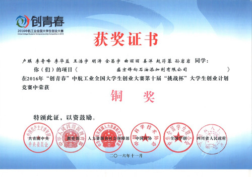 回顾本届赛事的组织全程,我校师生报送的48项作品从全省1981项作品中脱颖而出,斩获5金、7银、26铜佳绩,金奖数在我省高校前6名,其中厉安昕老师指导的创业项目《盛京锋向石油添加剂有限公司》获得国家铜奖。