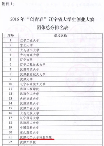 近日,从辽宁省教育厅获悉,由团省委、省教育厅、省人力资源和社会保障厅、省科技厅、省科协、省学联等单位共同主办的2016年“创青春”创业大赛结果公布。