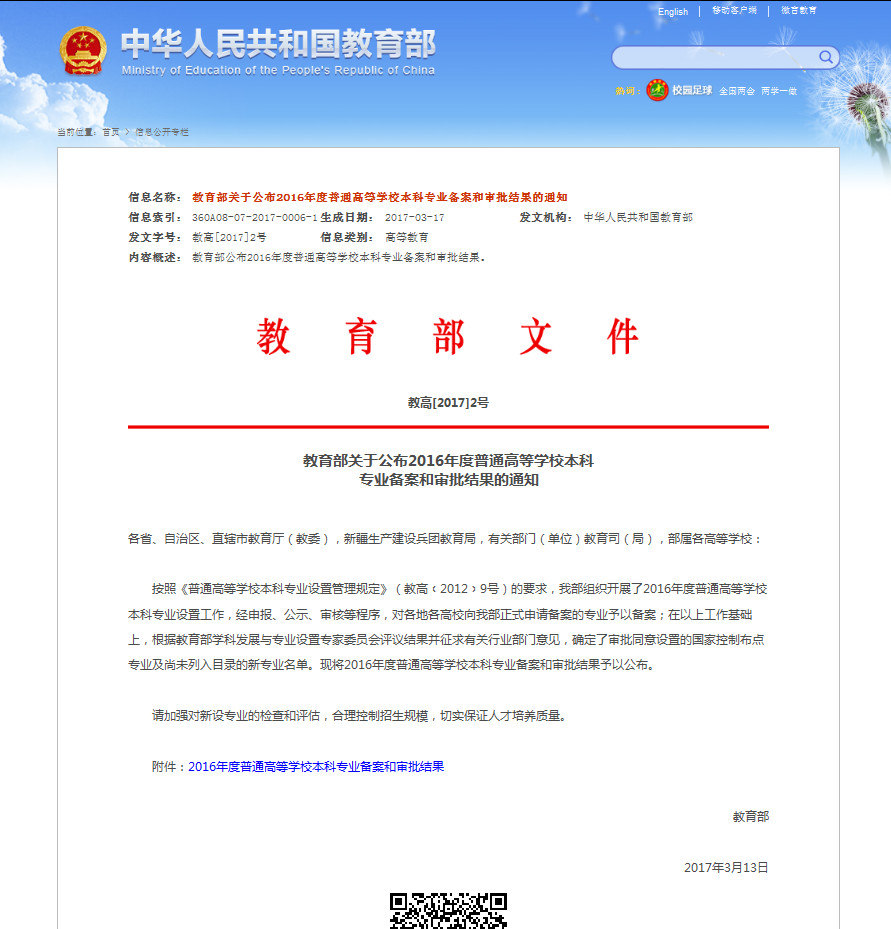 近日,教育部公布了2016年度普通高等学校本科专业备案和审批结果。其中,我校申报的机器人工程专业相继获省教育厅和教育部审核批准,拟计划于今年开始在全国范围内招生,我校正式成为全省第一批开办本专业的普通高校。据统计,全国目前涉及机器人生产的企业超过了800多家,机器人应用人才缺口约20万人,并且以每年20%至30%的速度递增。作为高端智能装备制造业的一个项目,辽宁省已明确将机器人相关专业人才储备摆在重要位置。我校审时度势,于2015年就开始着手进行机器人工程专业申办论证工作,并接续依托校内精良的师资力量和齐全的数控机床等实验设备,开展了培养目标设定、课程选择调配、应用模拟实验等一系列卓有成效的探索研究,为确保该专业通过审批与今后办学提供了有力支撑。