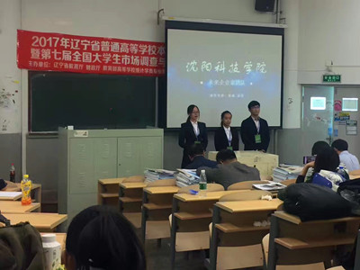 本届大赛从2016年10月份启动,历经10个月的时间,通过理论知识赛网考、校级选拔赛以及省赛初赛的层层选拔,我校共有两组作品入围辽宁省赛区决赛,并于5月6日前往东北财经大学与全省30所高校105支队伍参赛选手同台竞技。经过现场展示陈述市场调查分析报告、答辩、总结等三个环节评审,由我校张威和赵恩老师指导的未来企业家团队撰写的《建立“大学生动态就业意向档案”实现精准就业调查报告》荣获省级一等奖,由我校张威和蒋明儒老师指导的暖心人团队撰写的《沈阳市民幸福度调查与分析》荣获省级二等奖。管理系张威老师、赵恩老师、蒋明儒老师获得“优秀指导教师”奖。