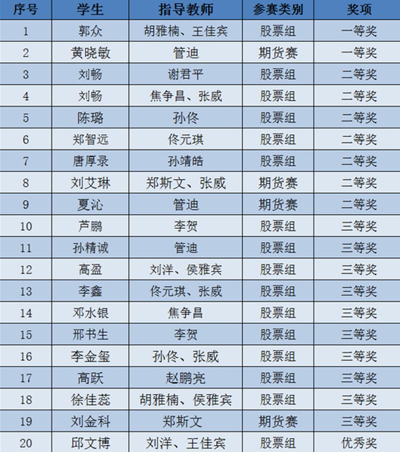 在本次比赛中,学校领导高度重视,经过大学生创新创业教育中心和经济系的全力组织与配合,校内选拔赛师生参与度和获奖数为往届最高,经统计,全校共有203名师生团队参与竞赛。形成了良好的经济竞赛氛围。通过本次比赛,学生们通过利用国际先进、高度仿真的虚拟交易系统和金融行为大数据技术,提高了投资意识和投资理念,全面提升了学生专业知识技能与实操技能。在本次比赛中,我校学生充分展现出其具有国际视野和专业能力的高素质能力及创新意识和团队协作精神。本次比赛取得的优异成绩将不断引领我校教师更新教育思想观念,改革教学内容、教学方法和教育手段,加强学生的创新创业水平培养。
