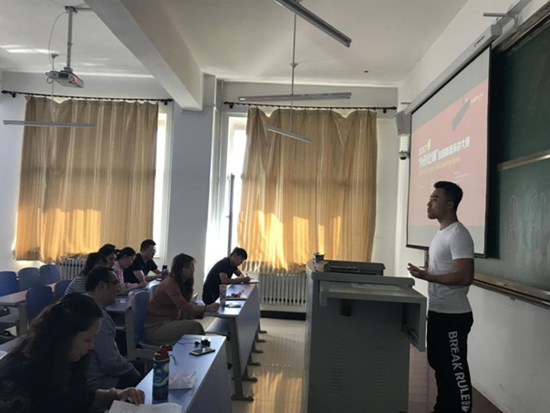 英语演讲大赛校内选拔赛于9月20日下午14:30在第二教学楼403教室举行。大学生创新创业教育中心田川老师和基础部外语教研室全体英语老师担任本届大赛评委。彭博老师和邢军老师主持。基础部教学主任刘芳老师和我校部分学生观摩了本次大赛。