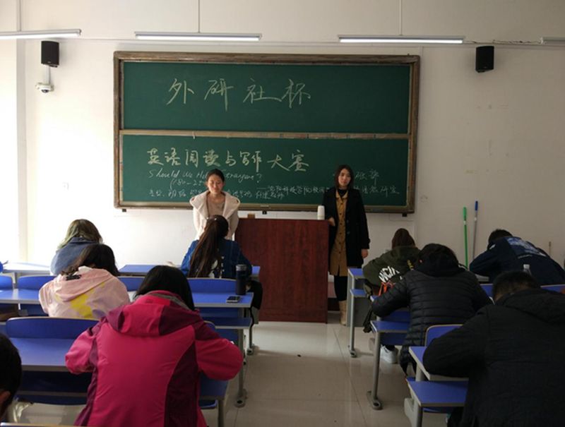 英语阅读和英语写作大赛校内选拔赛于10月17日中午12:30在第二教学楼324教室举行。吸引了来自我校四个年级的71名选手参加。大赛监考人员是基础部外语教研室司昌超老师和卓竹梅老师。基础部教学主任刘芳和洪雯雯老师观摩了比赛。