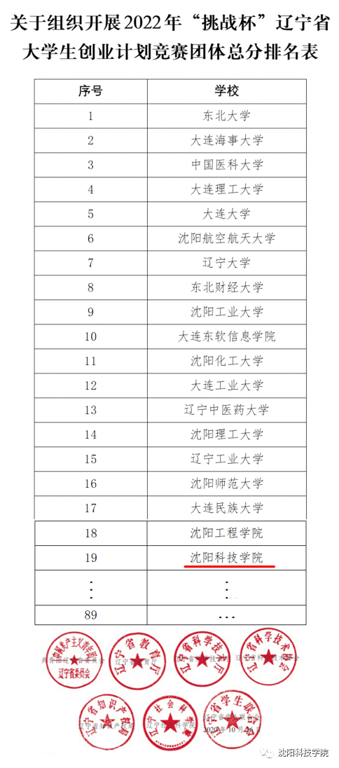 今年10月,团省委、省教育厅等7家主办单位公布了2022年第十六届“挑战杯”辽宁省大学生创业计划竞赛团体总分,我校在辽宁省参赛的89所高校中,团体总分排名第19位,在民办高校中排名第2位,学校荣获“优秀组织奖”,5位老师获得“优秀指导教师”称号。