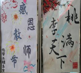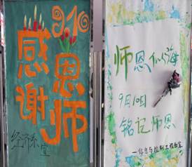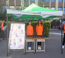 化学工程系的同学们在教学楼门口布置展棚,迎接老师的到来,为老师赠送礼物,对老师诉说节日祝福语,以此来表达他们对老师的感激之情。