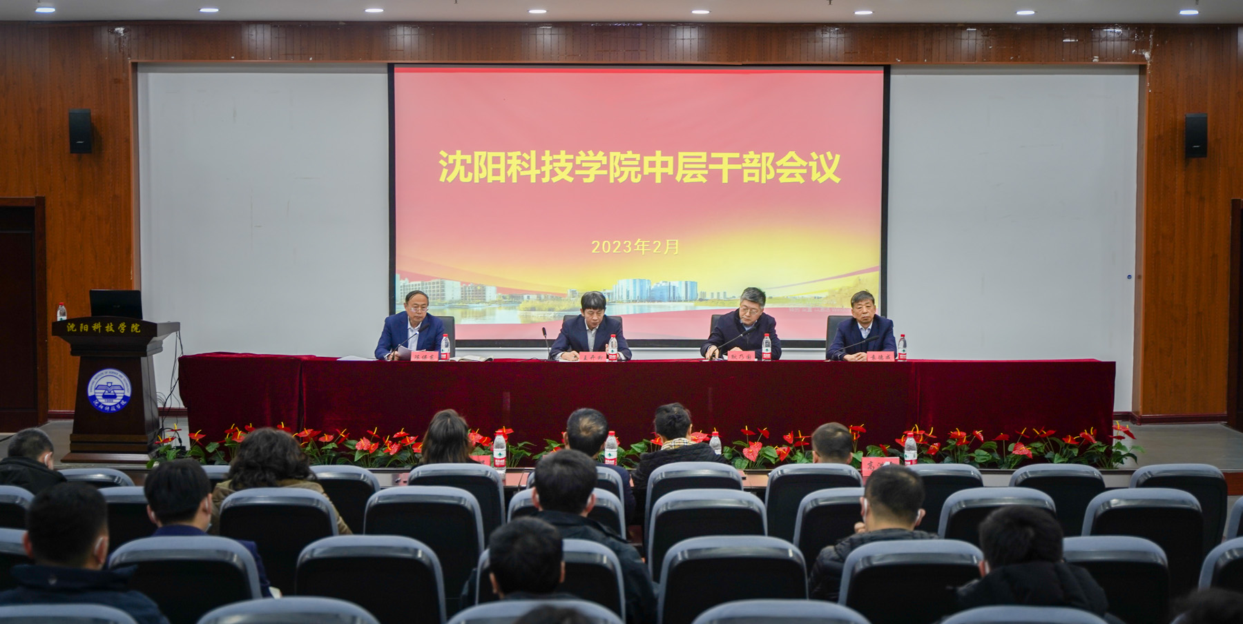 2月21日14时,我校在图书馆报告厅召开了2023年春季学期中层干部会议,主要是深入学习贯彻党的二十大精神,贯彻落实全省教育大会精神,深入落实辽宁全面振兴新突破三年行动谋划,总结学校2022年工作,部署2023年重点工作任务。董事长及全体校领导班子出席会议。会议由副校长袁德成主持。全校中层干部参会。