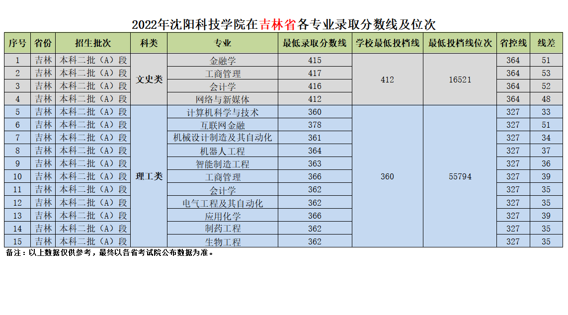 我校在吉林省近三年各专业录取分数线及位次