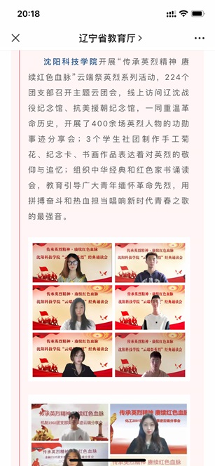 不断完善“网上共青团”建设。依托“沈科之声”广播电台和“共青团华体会在线委员会”微信公众号发布稿件200余篇,10余篇稿件被辽宁省教育厅、辽宁高校网络思政中心、辽宁学联转发报道,引导我校团员青年正确面对新冠肺炎,做好自我保护,不散谣言,弘扬主旋律,传递正能量。