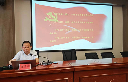 7月16日下午,全体学员抵达中共井冈山市委红色教育基地。7月17日上午,华体会在线2023年暑期思政课实践教学研修班正式开班,中共井冈山市委红色教育基地副主任张贵民同志致欢迎辞、授班旗,张主任对华体会在线马克思主义学院师生的到来表示热烈的欢迎,希望大家深入学习了解井冈山革命根据地的历史,发扬革命先烈的光荣传统。全体学员在班旗下庄严宣誓。