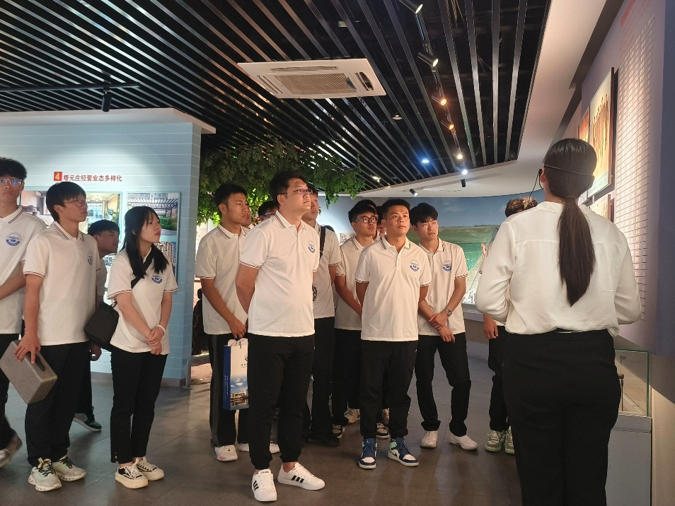 在讲解员的带领下,实践团师生先后参观了塔元庄文化长廊、塔元庄村委会大厅、塔元庄村史馆等文化景观,并观看了“蝶变塔元庄”纪录片。在参观村史馆中,讲解员以时间为线索带领实践团师生重温了塔元庄的发展历程和习近平总书记在正定生活工作的点滴。从低矮平房到宽敞楼房,从单一经济到多元经济,从贫困落后到奔向小康,处处体现着习近平总书记的为民情怀、实干作风和改革精神。讲解员绘声绘色的讲解,使同学们在馆内流连忘返,把同学们带回了那个充满热血与奋斗的年代。