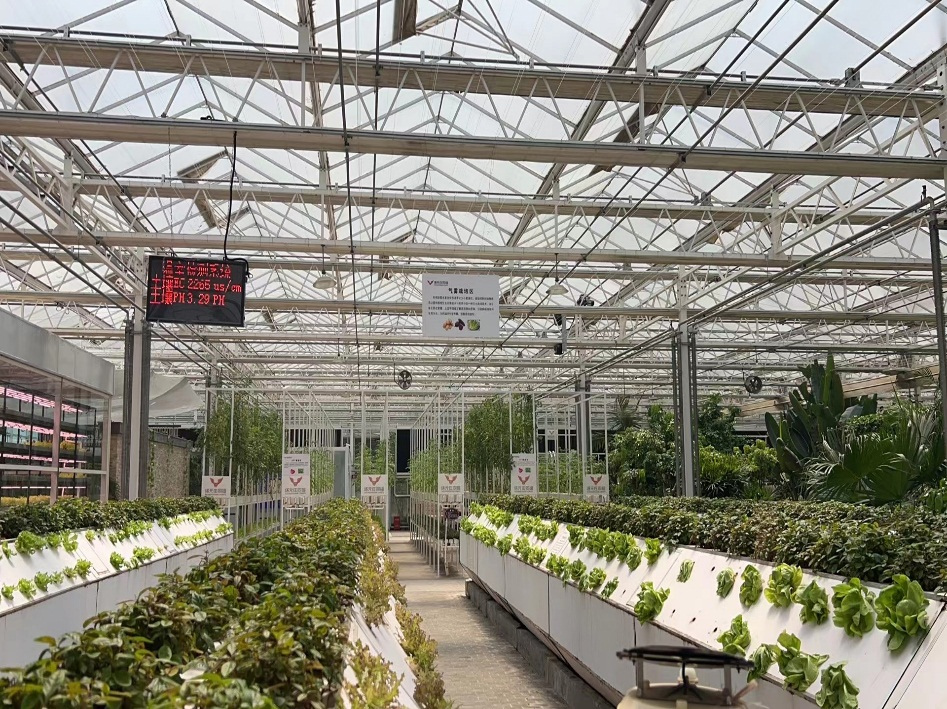 随后,实践团师生共同参观了塔元庄同福乡村振兴示范园的智慧农场,恒温恒湿环境下的有机蔬菜伸展着嫩芽,鱼菜共生、气雾栽培、立体农业、南果北种…… 现代化种植新技术让这里展现出勃勃生机的景象,让实践队全体师生真切感受到科技兴农的重要。