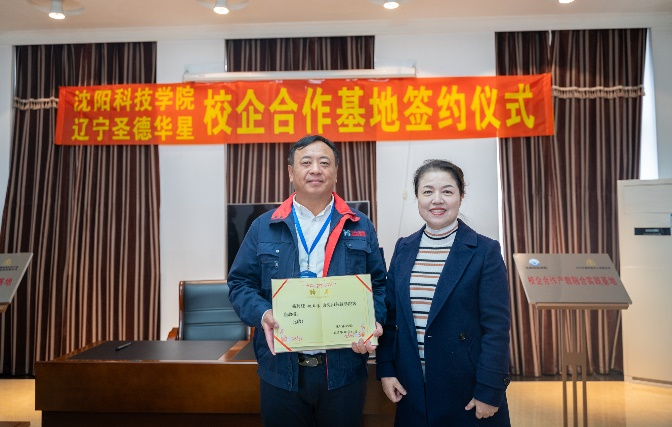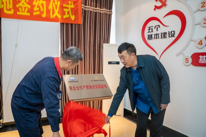 随后,孙校长和赵总经理代表双方正式签署了校企合作协议,校方王鸿鹏副校长和企业方刘凯副总经理为校企合作、产教融合实践基地揭牌,校方袁德成副校长和企业方研究院肖林久院长为双师双能教师培训基地揭牌。这一重要合作项目的达成标志着学校与辽宁圣德华星化工有限公司在产学研合作领域迈出了坚实的步伐。