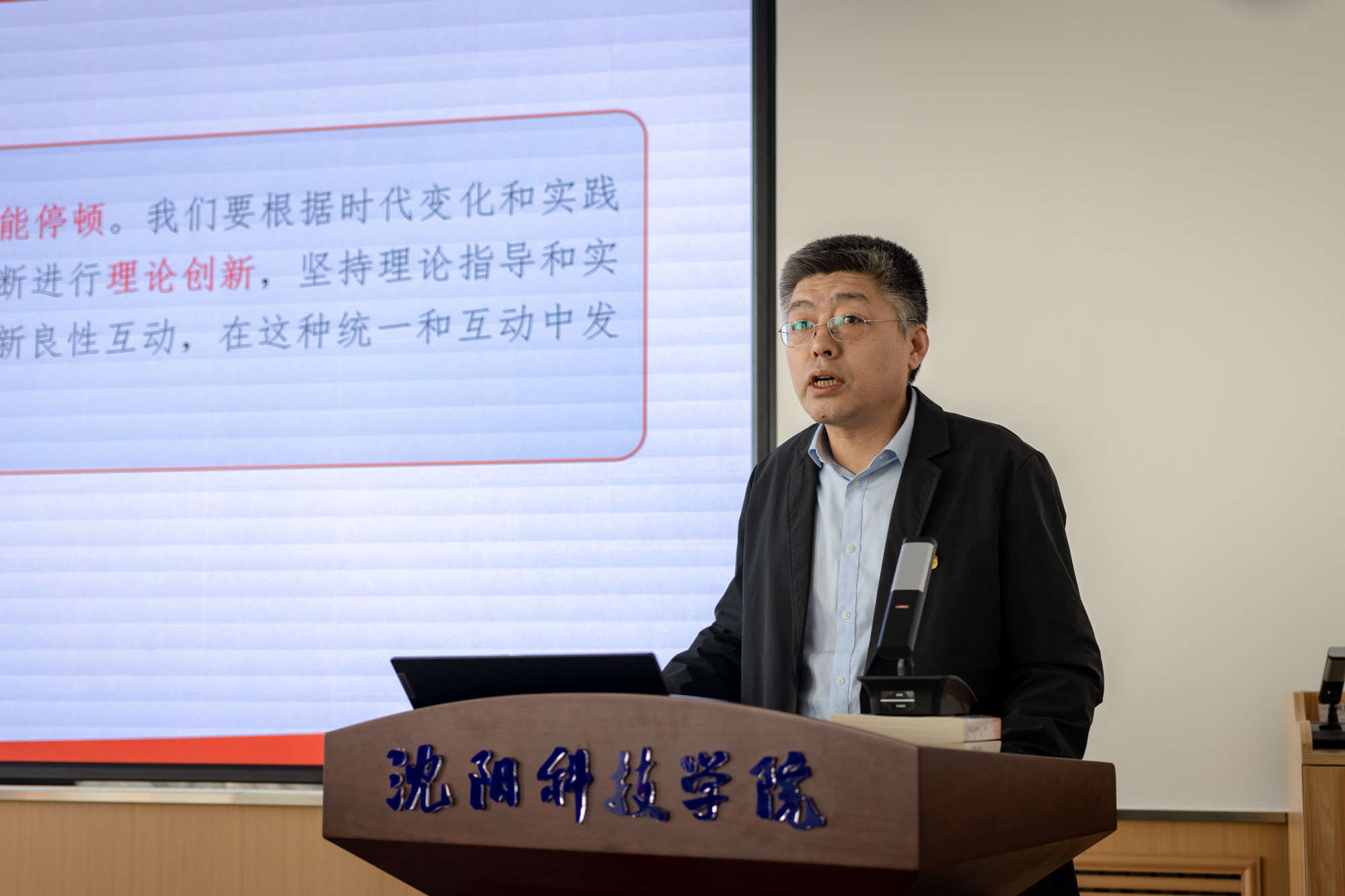 耿乃国以“深入开展主题教育,加强学校党建工作”为题,结合学校主题教育开展情况和自身学习体会,从领会主题教育文件精神,统一思想认识;习近平新时代中国特色社会主义思想的世界观和方法论的学习体会;以主题教育为指导,加强学校党建工作等三个方面进行了讲授。耿乃国从理论层面重点解读了习近平新时代中国特色社会主义思想所蕴含的世界观和方法论,他指出,中国特色社会主义进入新时代,作为中国化时代化的马克思主义,习近平新时代中国特色社会主义思想坚持“两个结合”,谱写了马克思主义中国化时代化新篇章,实现了马克思主义中国化时代化新的飞跃。