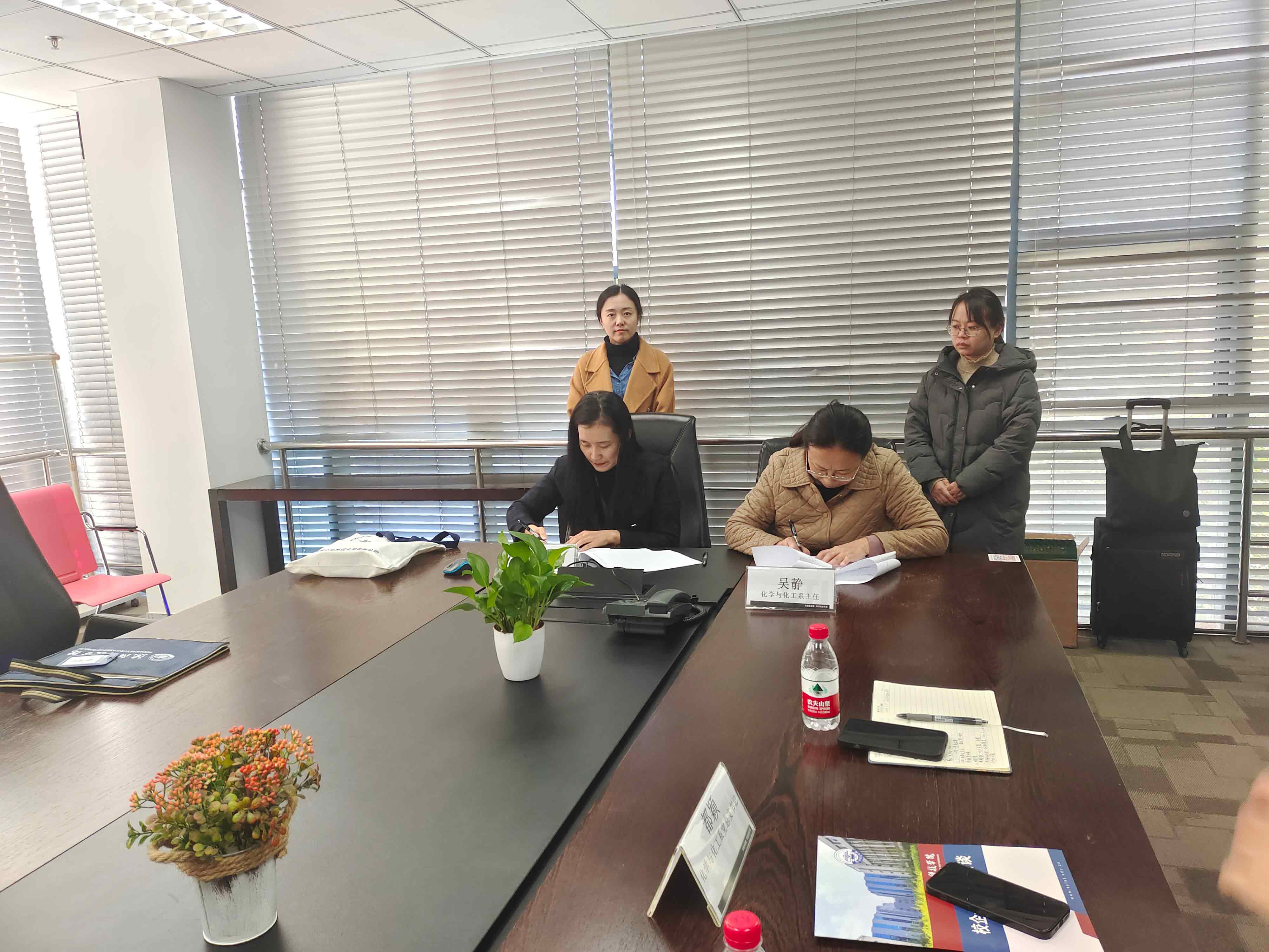 签约仪式上,企业对化学与化工系一行的到来表示欢迎,并介绍了企业近年来的经营情况、业务领域和人才需求、我校学生实习情况等信息,表达了深化校企合作、寻求合作双赢的美好愿景。化学与化工系主任吴静、党总支书记都颖分别介绍了学校的基本情况和办学特色,并就我校学生在该企业的实习、工作和发展情况、教师挂职培训、毕业论文指导与合作、企业到校开展培训课程等多种合作形式进行深入沟通洽谈。随后,校企双方达成合作共识并正式签署了校企合作协议。