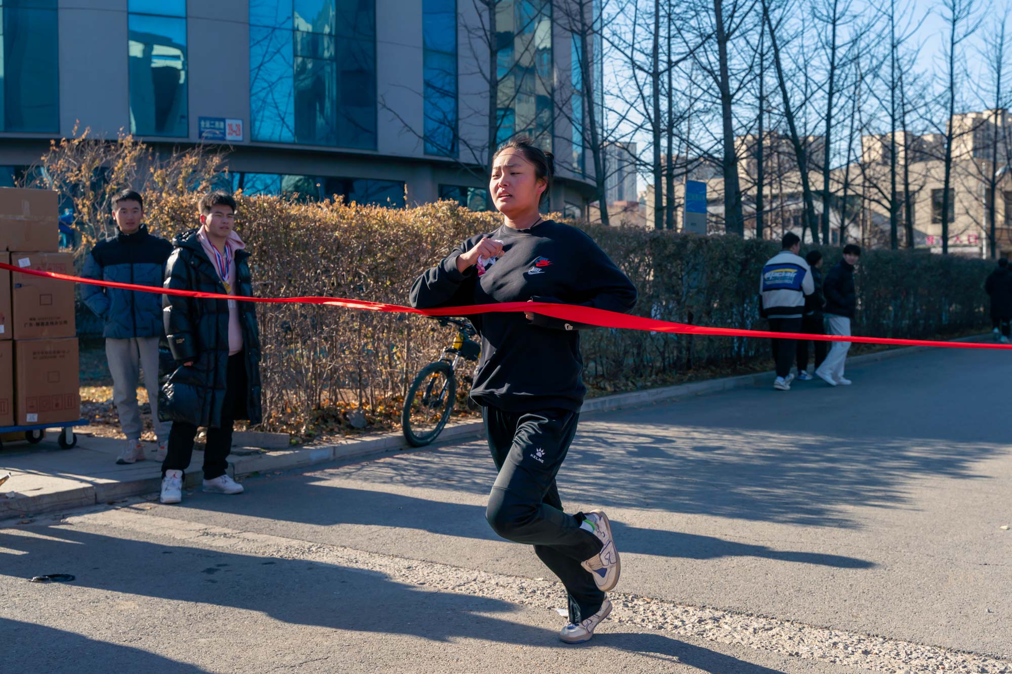 本次活动吸引了全校300余名学生参与,以男子组、女子组和男女混合接力组三种形式进行。随着发令枪声的响起,选手们眼中饱含信心,个个精神抖擞,全力以赴,脚上踏着笃定有力的步伐,奔向终点,无不展现出十足的拼劲和坚韧不拔的毅力。