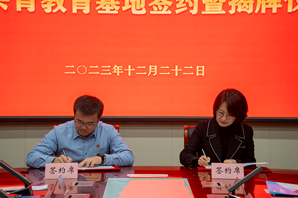 抗美援朝纪念馆党委副书记、纪委书记史春庆与我校党委副书记、副校长高洪震共同签署共建共育教育基地合作协议书。