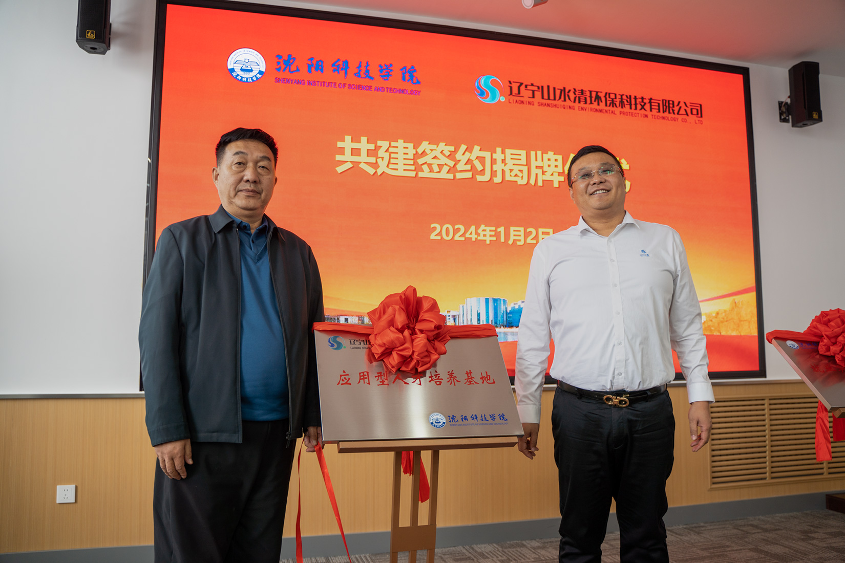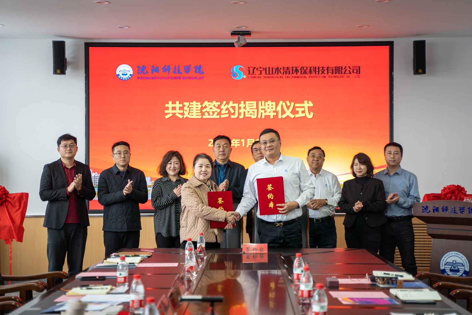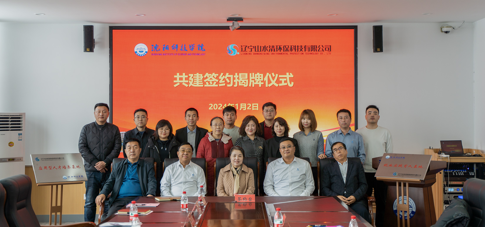1月2日,我校与辽宁山水清环保科技有限公司举行校企合作签约暨揭牌仪式,辽宁山水清环保科技有限公司董事长兼总经理郭洪君、总经理李大铭、副总经理李宝珠、总经理助理吕岱弘及相关部门负责人,学校党委副书记、校长孙玉红,副校长王鸿鹏及相关部门负责人参加会议。会议由副校长王鸿鹏主持。