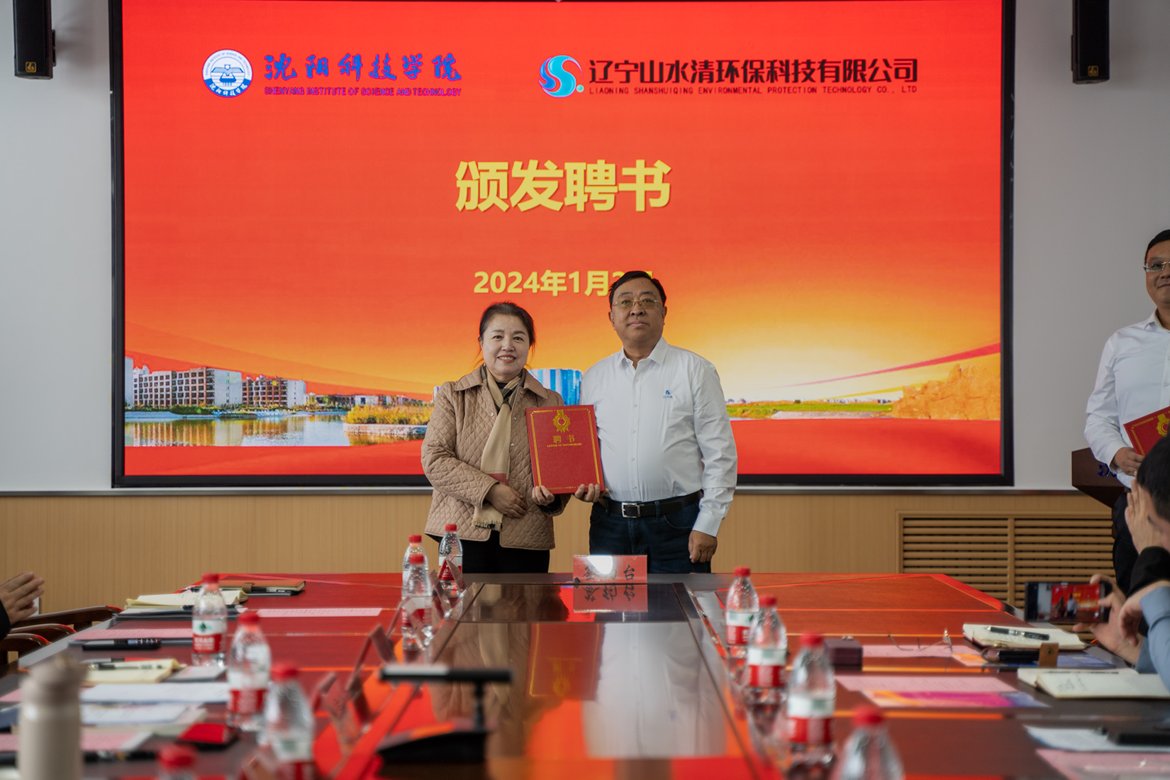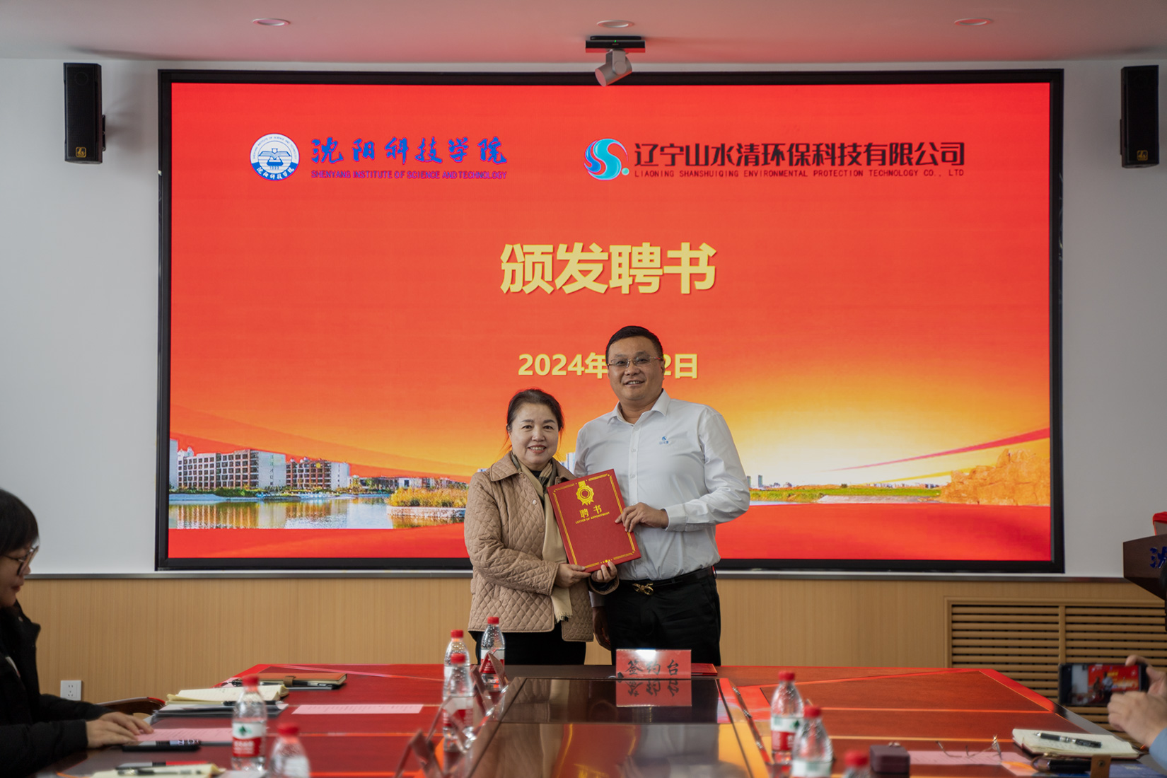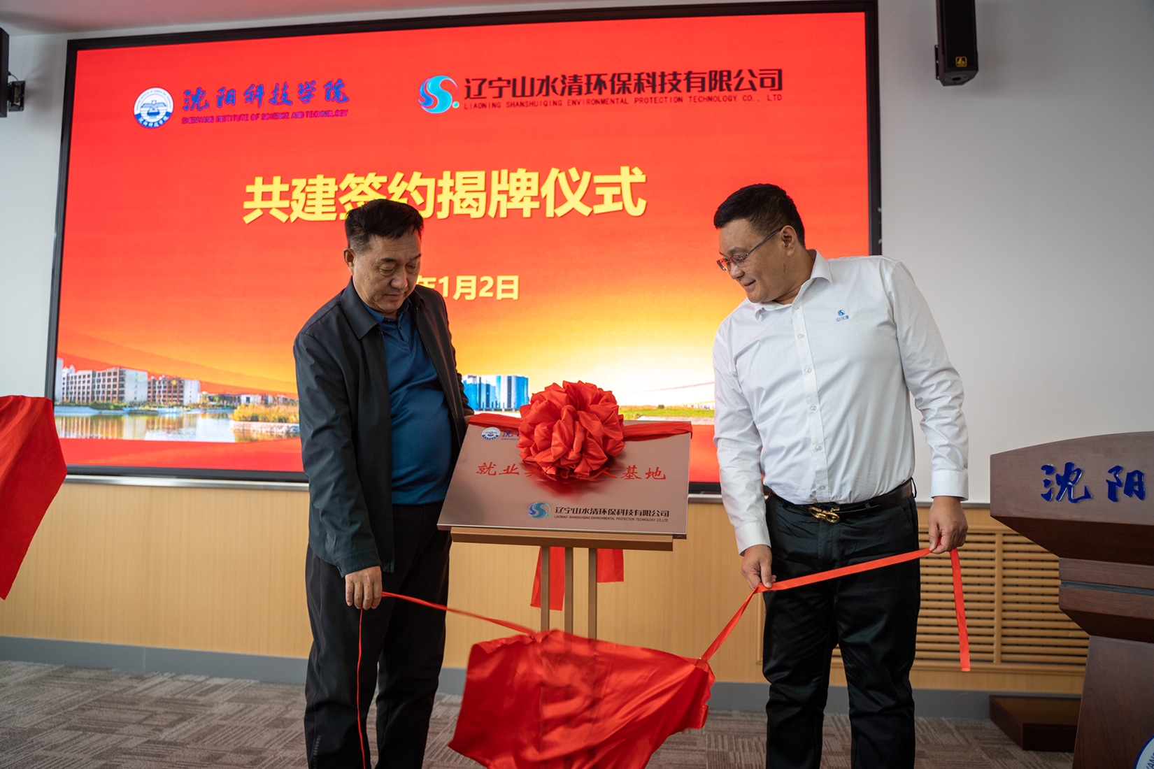 1月2日,我校与辽宁山水清环保科技有限公司举行校企合作签约暨揭牌仪式,辽宁山水清环保科技有限公司董事长兼总经理郭洪君、总经理李大铭、副总经理李宝珠、总经理助理吕岱弘及相关部门负责人,学校党委副书记、校长孙玉红,副校长王鸿鹏及相关部门负责人参加会议。会议由副校长王鸿鹏主持。
