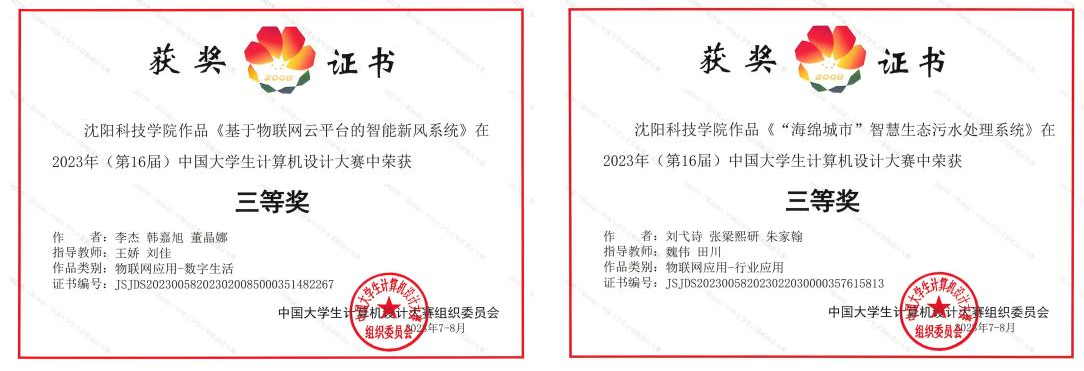 在2023年(第16届)中国大学生计算机设计大赛中,荣获国家级三等奖2项。