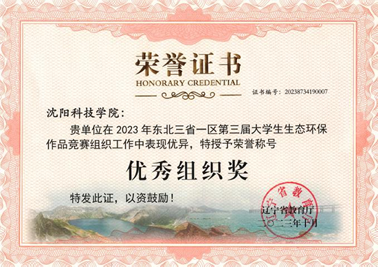 在2023年东北三省一区第三届大学生生态环保作品竞赛中,荣获二等奖3项、三等奖8项,并获“优秀组织奖”称号。
