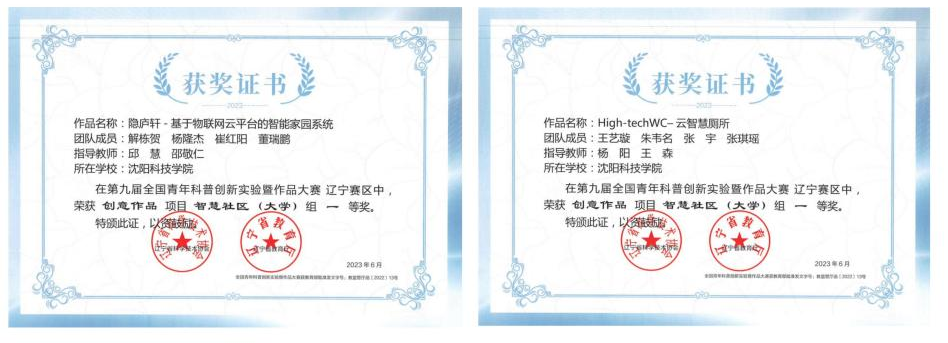 在第九届全国青年科普创新实验暨作品大赛辽宁赛区中,荣获一等奖2项。