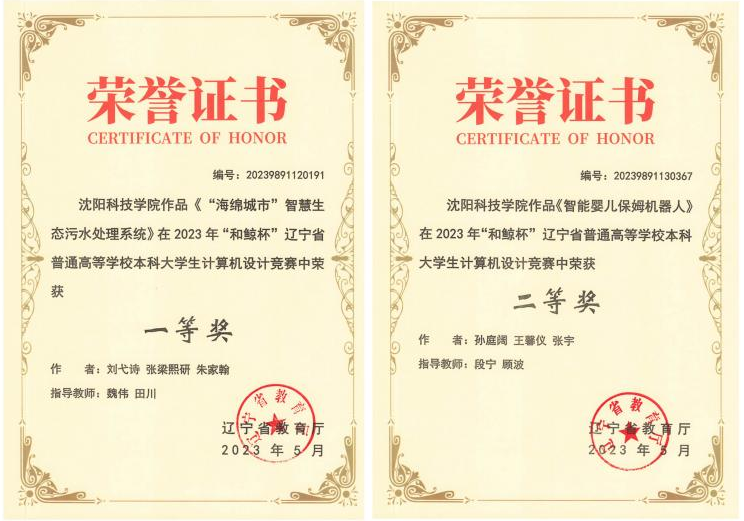 在2023年“和鲸杯”辽宁省普通高等学校本科大学生计算机设计竞赛中,荣获一等奖1项、二等奖1项。