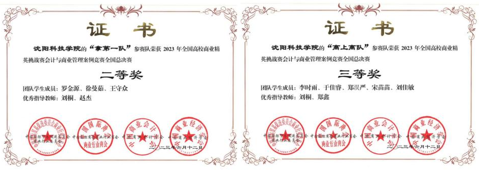 在2023年全国高校商业精英挑战赛会计与商业管理案例竞赛中,荣获二等奖1项、三等奖1项。