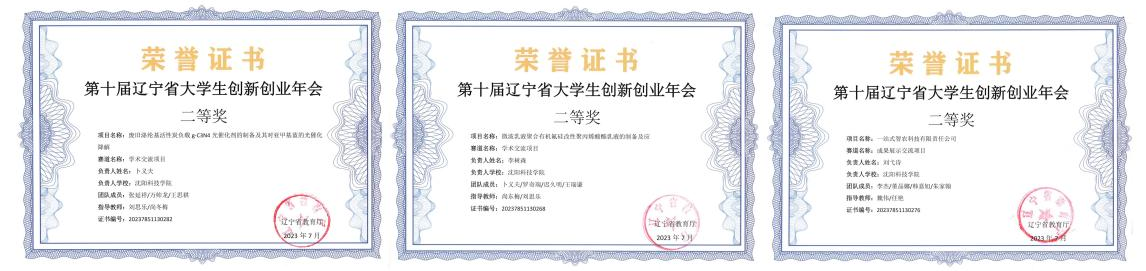 在第十届辽宁省大学生创新创业年会中,荣获二等奖3项。