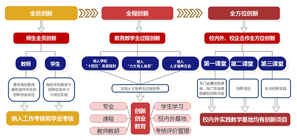 我们处在创新的时代,经济社会发展急速转型,通过创新创业改造传统产业升级,要求培养具有创新创业能力的应用型人才,因此,我校提出“三全”创新创业教育理念,出台了《华体会在线关于深入推进创新创业教育与专业教育深度融合的实施意见》(沈科发〔2023〕349号)。