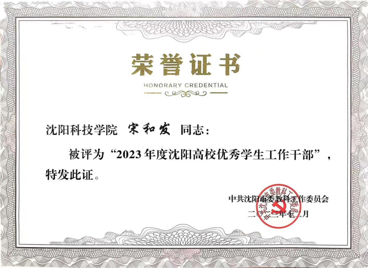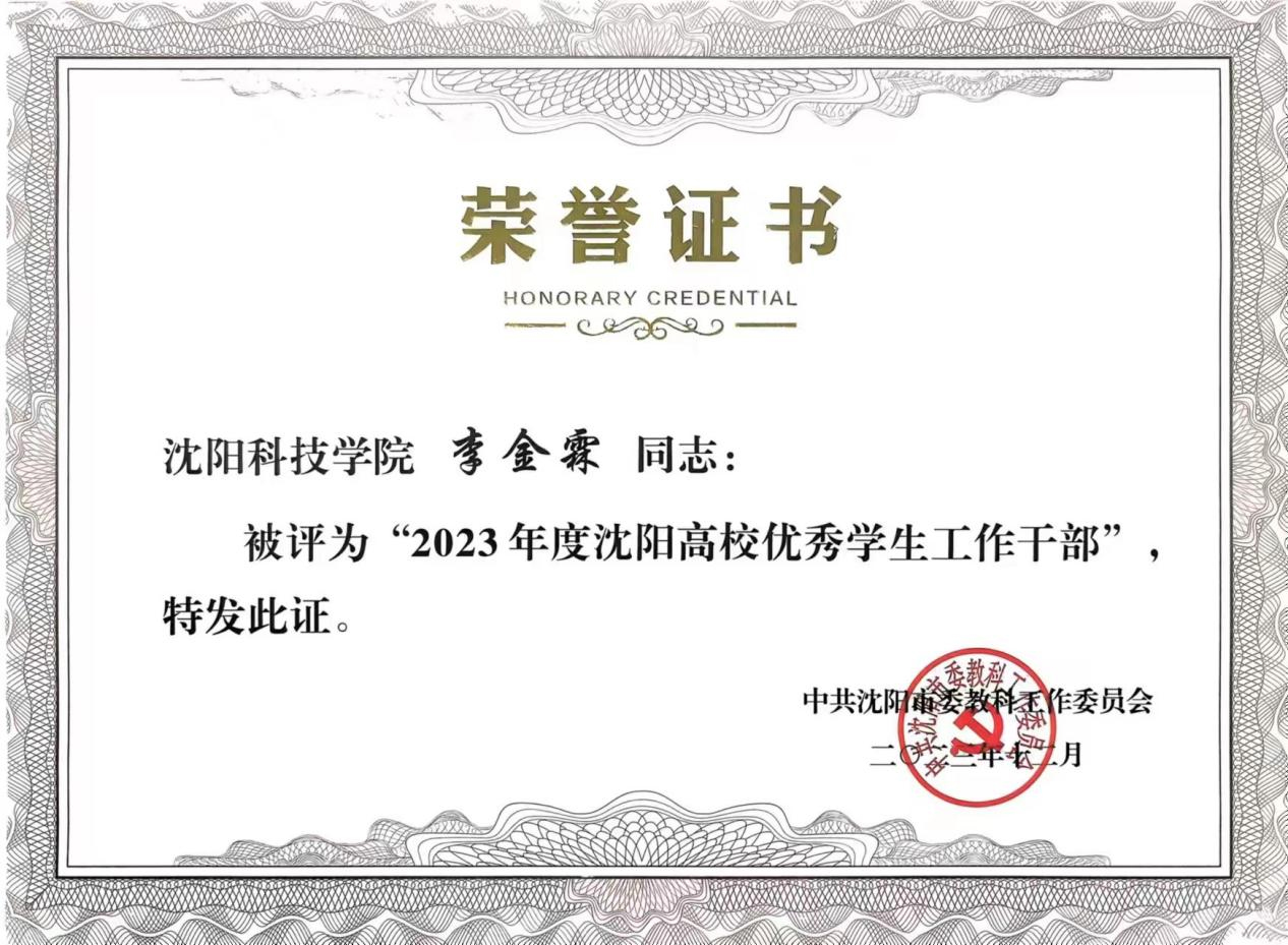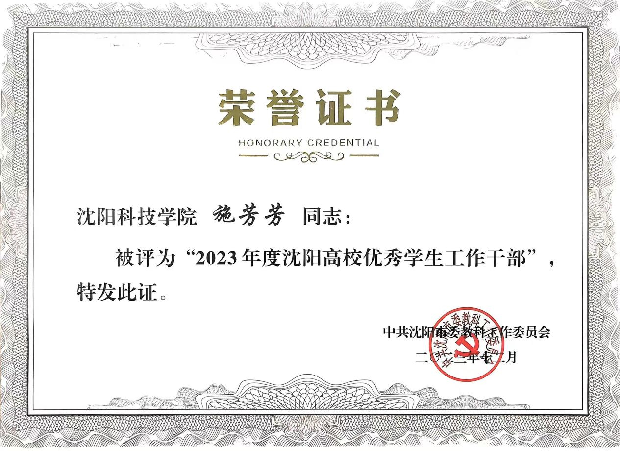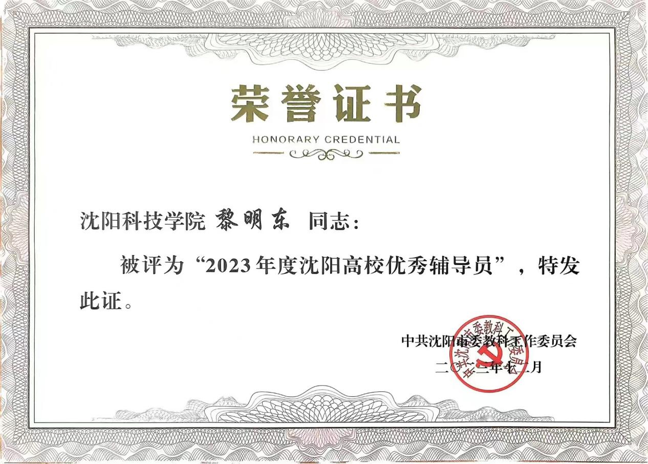 近日,中共沈阳市委教科工作委员会组织开展了“2023年度沈阳高校优秀辅导员、优秀学生工作干部”评审工作。经个人申报、系部推荐、校内评审、学校推荐、专家审核,我校辅导员王爽、田野、杨阳、李倩、黎明东、蒋明儒、肖雪婷荣获“2023年度沈阳高校优秀辅导员”荣誉称号。我校宋和发、施芳芳、李金霖荣获“2023年度沈阳高校优秀学生工作干部”荣誉称号。