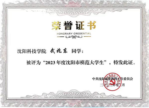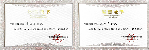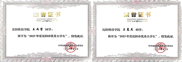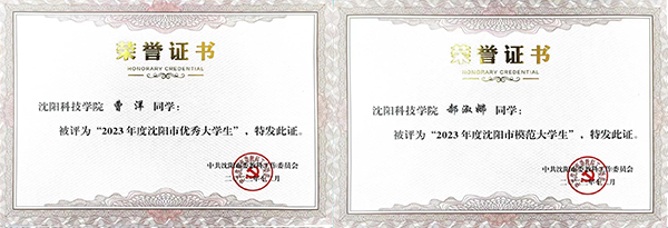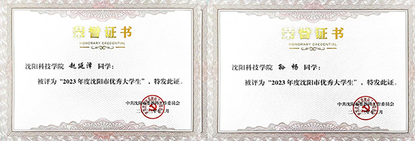 近日,中共沈阳市委教科工作委员会组织开展的2023年度沈阳市“十百千”优秀大学生评选活动结果揭晓,我校会计学专业2003班李博、电气工程及其自动化专业2004班张嘉琪、电气工程及其自动化专业2002班李伊琦、生物工程专业2002班程龙、金融学专业2003班姜妍、会计学专业2002班于佳睿、机械设计制造及其自动化专业2002班赵延泽、社会体育指导与管理专业2002班孙畅、电气工程及其自动化专业2101班肖涵滨、智能制造工程专业2001班丛鲡葶、金融学专业2002班王雨馨、金融学专业2003班王惠杰、制药工程专业2103班曹洋15名学生荣获2023年度沈阳市“优秀大学生”荣誉称号。我校电气工程及其自动化专业2003班郝淑娜、机器人工程专业2001班武兆东两名学生荣获2023年度沈阳市“模范大学生”荣誉称号。