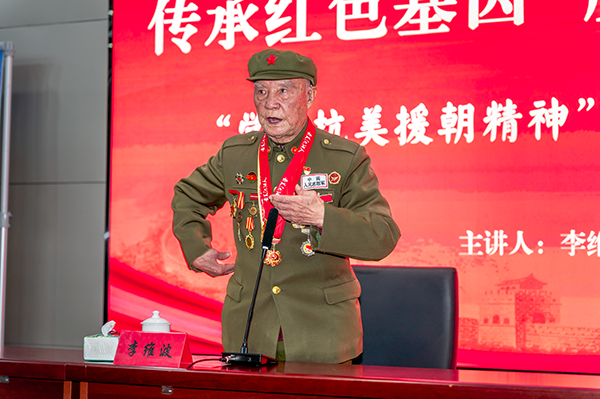 会上,李维波老战士介绍了自己的革命经历和军旅生涯。将参加抗美援朝战争期间的战斗经历,以通俗易懂的语言,向与会师生进行了详细的讲解和场景还原,重点讲述抗美援朝战争的历史背景,敌我双方的差距,取得立国之战胜利所遭受的艰难困苦,把上甘岭战役、长津湖战役和冰雕连的事迹和邱少云等英雄人物故事进行了深入描述。最后,李维波老战士寄语新时代大学生,要认真学习了解中国人民志愿军的光辉历史和光荣传统,在日常的学习生活中增强爱国情怀和历史责任感,大力弘扬抗美援朝精神,为实现中华民族伟大复兴的中国梦,刻苦学习、努力奋斗!
