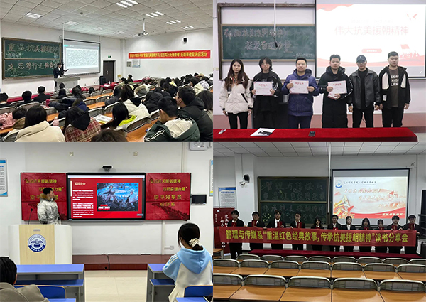 各系部高度重视,精心组织实施,充分发挥学生党员、学生干部的示范引领作用,利用早晚自习组织学生集体阅读抗美援朝相关书籍,学生通过PPT讲解、观看短视频、主题演讲等多种形式,分享自己的读书心得体会,讲述抗美援朝战争的英雄故事和伟大抗美援朝精神内涵。