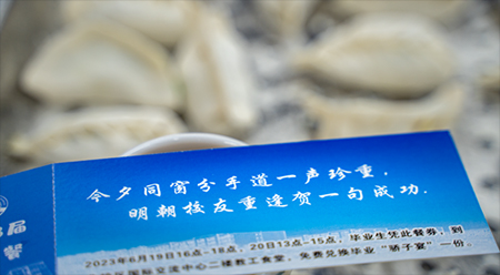 今年饺子宴活动由毕业生代表和学校领导手工包制而成,采用自助模式,同学们只需要凭纪念餐券就能自助挑选各种手工水饺、拌菜、水果、饮料。在即将毕业踏上新征程的时刻,吃下母校暖心的“饺子宴”,饱含着满满的深情与感动。