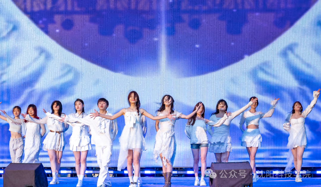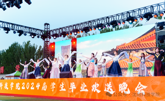 本场晚会在绚丽的灯光下拉开序幕,晚会融合了乐队、舞蹈、合唱、相声等多种表演形式,毕业生以舞蹈诉说,以歌曲送别,展现了沈科学子的青春活力。