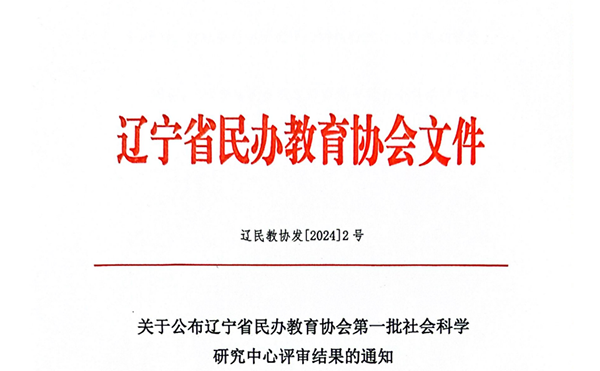 近日,辽宁省民办教育协会《关于公布辽宁省民办教育协会第一批社会科学研究中心评审结果的通知》(辽民教协发 [2024] 2号),我校成功获批2024年辽宁省民办教育协会第一批社会科学研究中心中的“民办高等学校教育数字化研究中心”。
