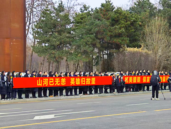 阔别祖国七十余载,英雄重归故土。学校师生代表在抗美援朝烈士陵园与志愿军老战士和社会各界人士代表共同迎接英雄回家,向最可爱的人致敬。