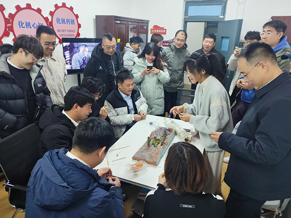 随后,全体成员来到化工与机械学院进行座谈交流。化工与机械学院党总支书记郭志新、院长程德红对到访人员表示热烈欢迎,双方党总支书记分别介绍了各自学院党建工作的特色做法和经验成果,并就如何加强基层党组织建设、提高党员教育管理水平、创新党建活动形式等问题进行了深入研讨与交流。
