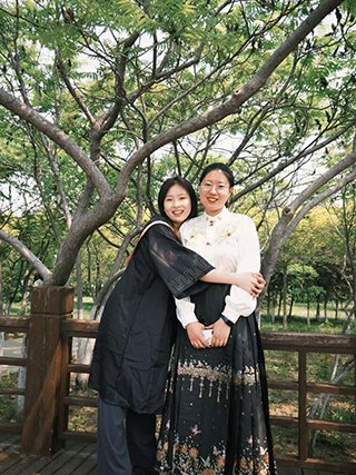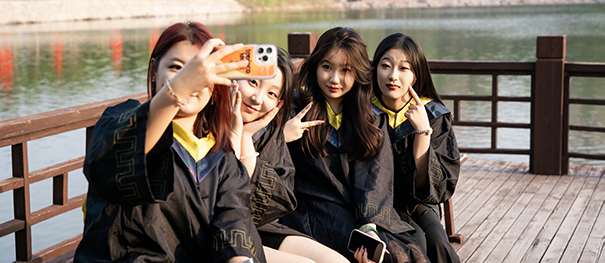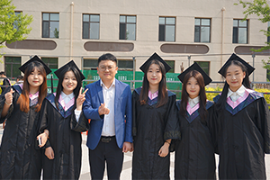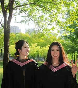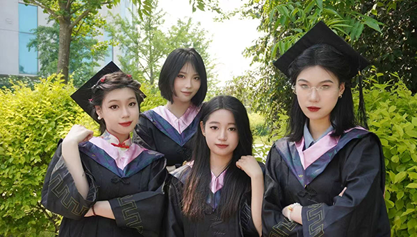 嫩绿的军装已变成素黑的学士服