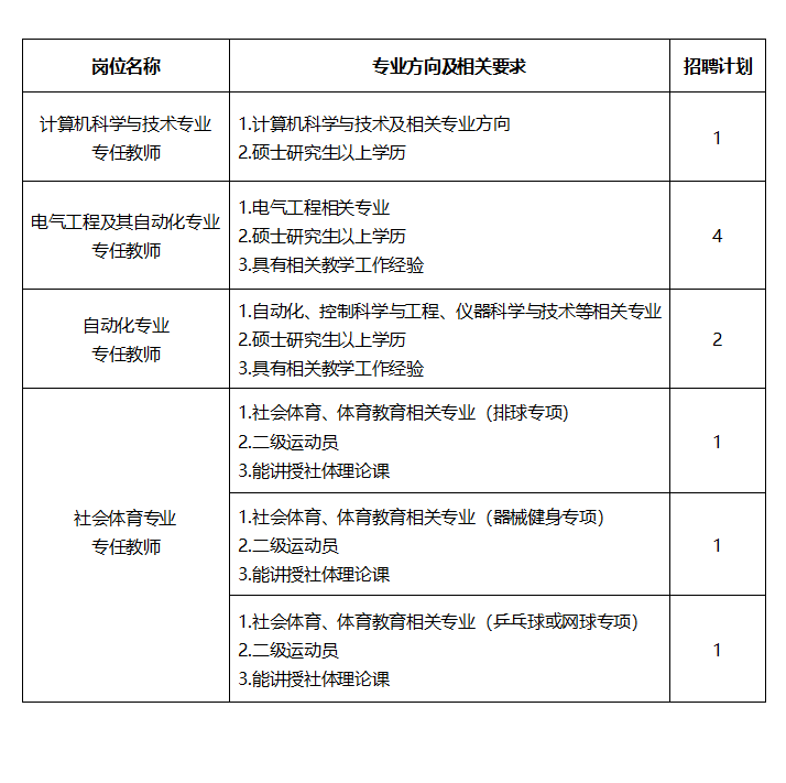 2.专业要求:硕士研究生,本科和研究生阶段所学专业与应聘专业一致或相近;博士研究生,本硕博至少两个阶段所学专业符合专业方向要求。