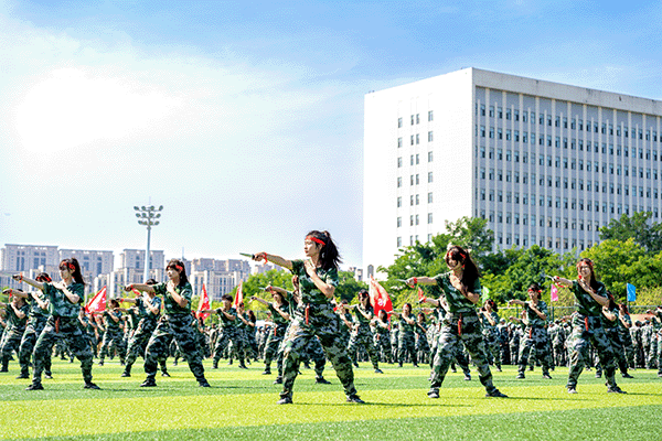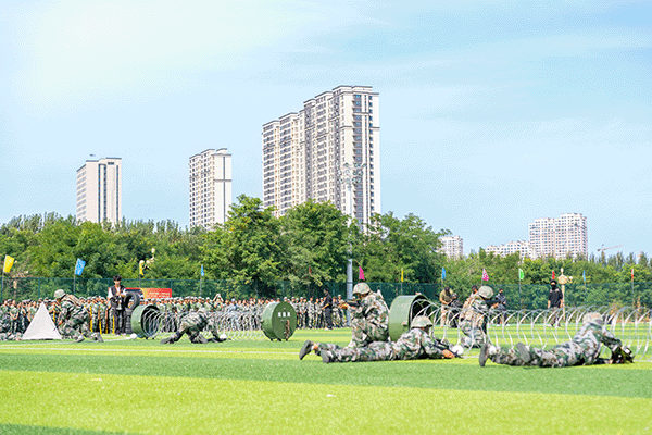 在各科目汇报表演中,全体参训学员以伟大抗战精神和伟大抗美援朝精神为引领,全面融入思想政治教育和爱国主义教育。刺杀操、匕首操、擒敌拳、破风八刀、倒功格斗等表演刚劲有力,气势如虹,胜利荣光字形、图案变换、破风八刀、战术演练与战场救护等特色项目惊艳全场,充分展现了入学以来的训练成果和新时代大学生的蓬勃朝气。