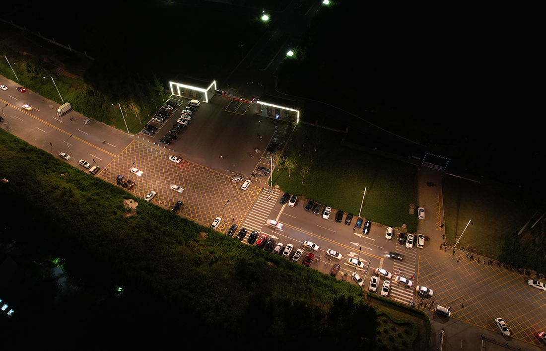 夜晚俯瞰灯火通明的校园