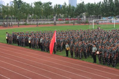 下午2时,新生军训总结大会暨开学典礼正式开始。全体师生高唱庄严雄壮的国歌过后,党总支书记王一女宣读了学校军训团关于表彰“内务卫生优秀寝室”、“军训标兵”、“先进连队”、“优胜营”等集体或个人的命令。主席台上就座的各位领导依次为上前受奖的教官和学生代表颁发了嘉奖令与荣誉证书,并合影留念。