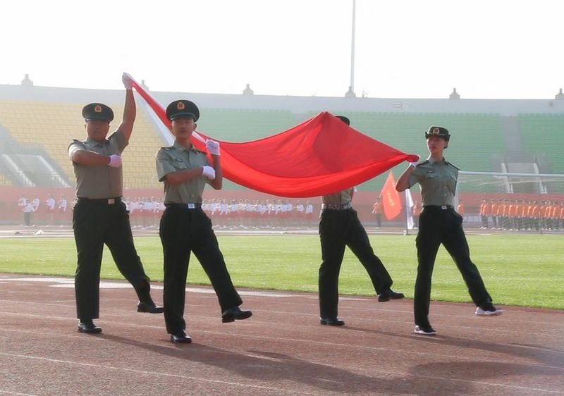 上午7时30分,在激昂的运动员进行曲中,国旗队、校旗队、旗海队、翻板队、花束队和我校各专业组成的23个方阵,身着整齐的服装、高喊嘹亮的口号,精神抖擞地依次入场接受大会的检阅。在经过主席台前时,每个方阵都以自信矫健的步伐、独特的队形变换、极富特色的表演,良好地展现出沈科莘莘学子不忘初心、砥砺前行的昂扬风貌!